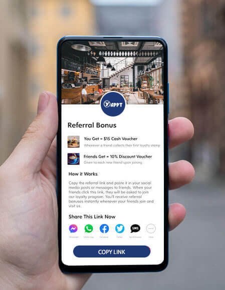 Send your loyalty program as a weblink to all your friends and social media followers. Entice them to join by offering a generous welcome reward